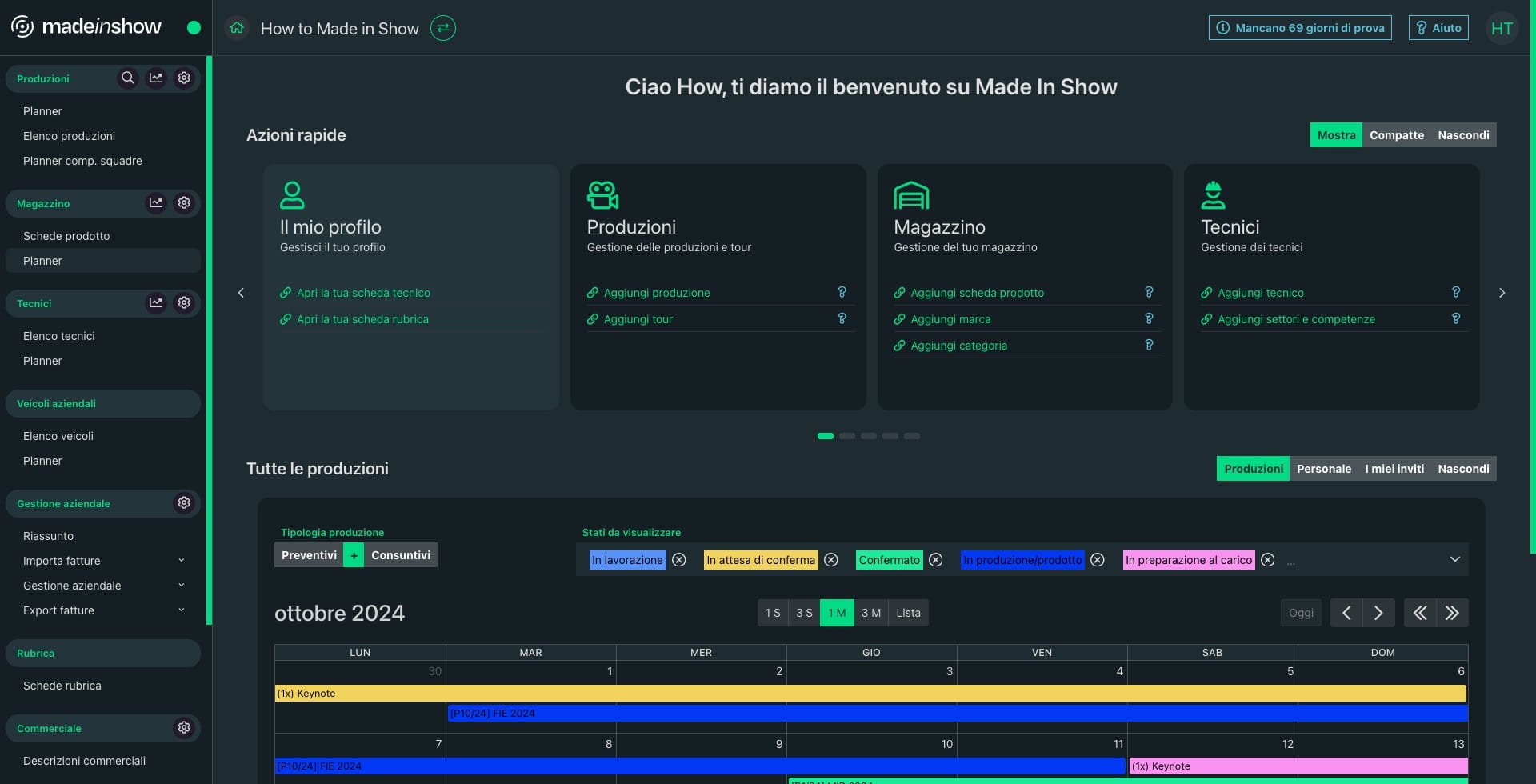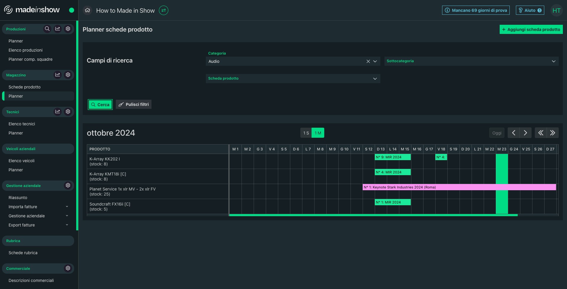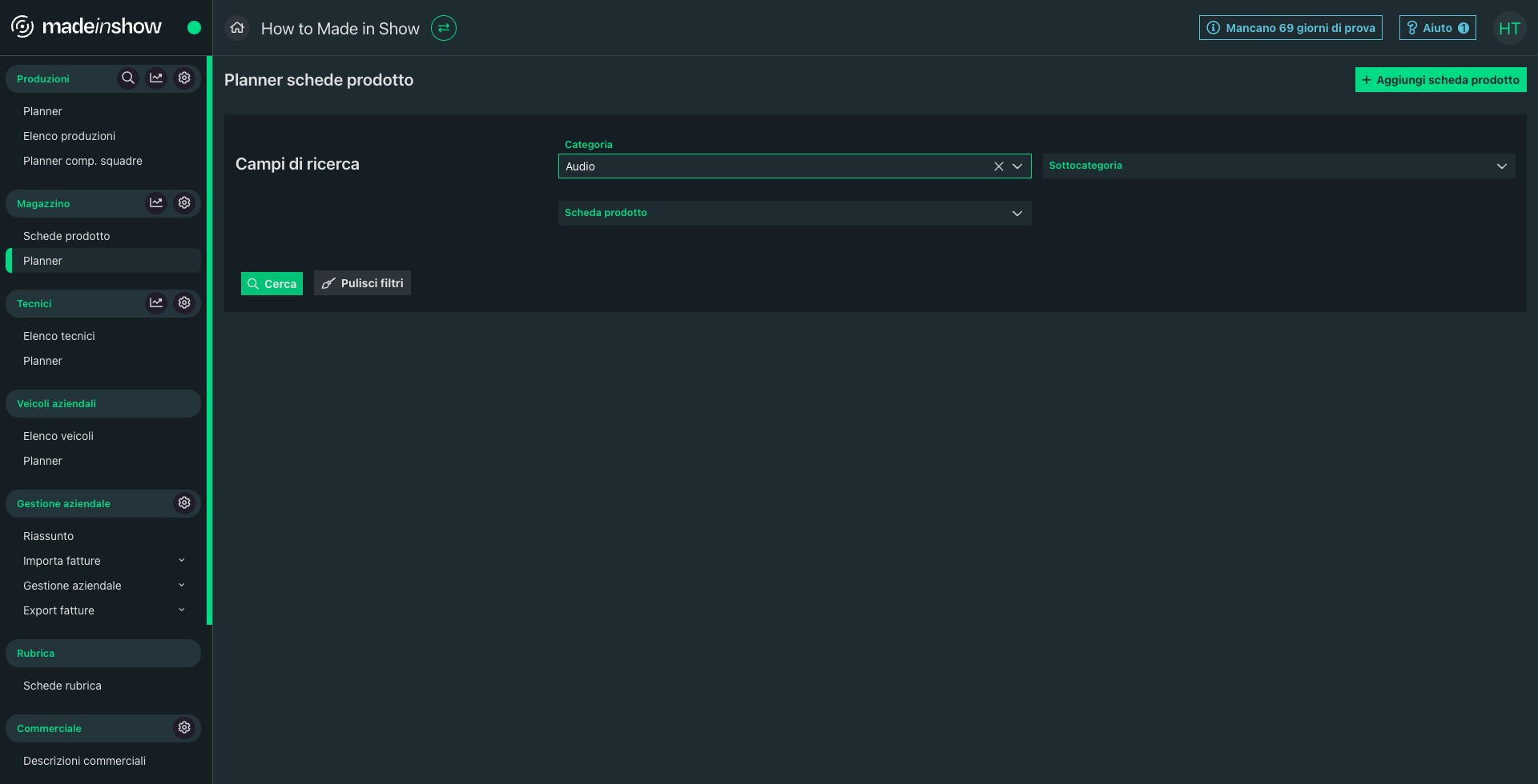 Visualizzazione mensile del planner relativo alle categorie e sottocategorie selezionate nei campi di ricerca precedentemente